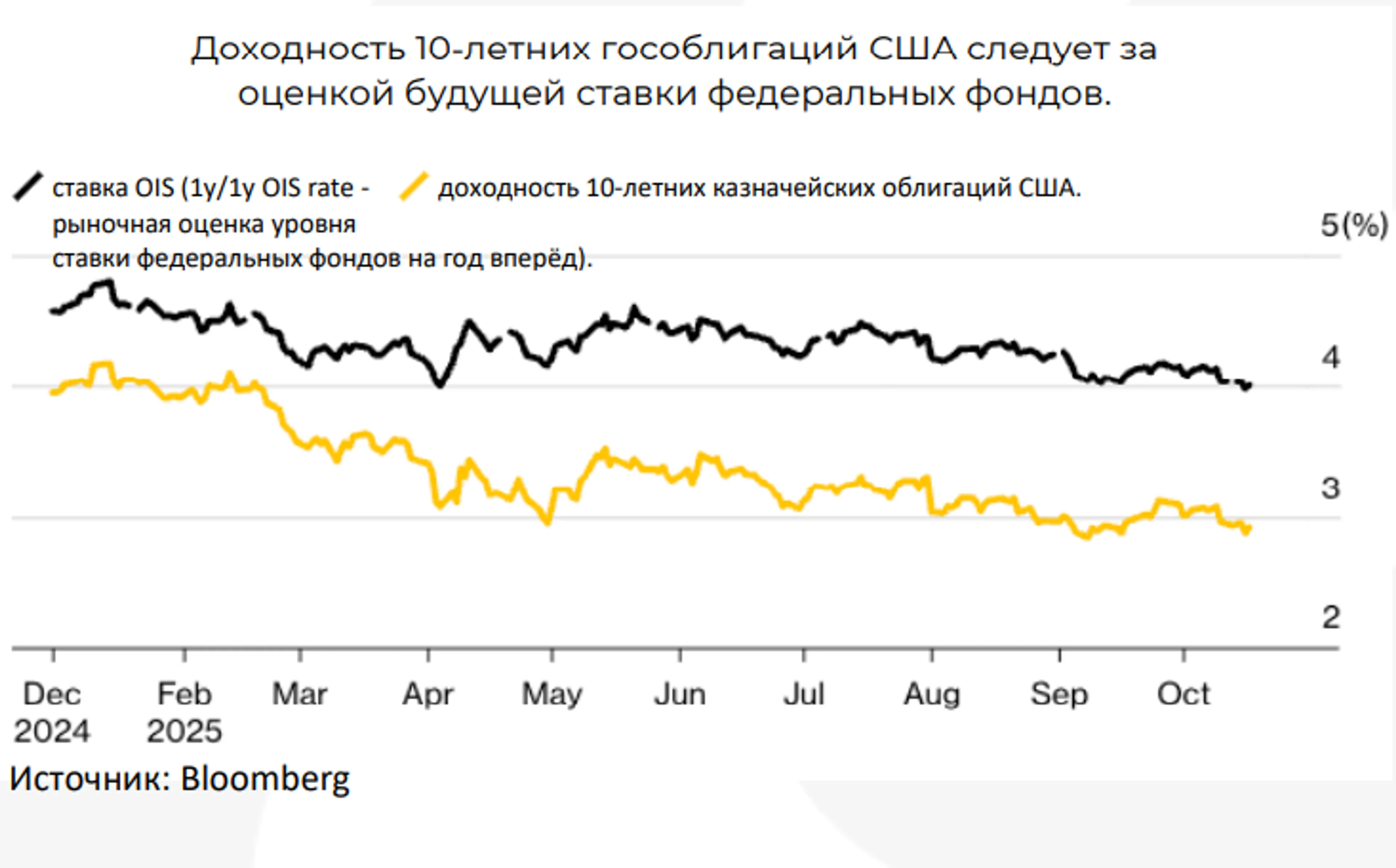На долговом рынке спрос на защиту усилился: доходности средних и длинных UST снизились, 10-летка опускалась к минимумам за 12 месяцев, классический «risk-off».