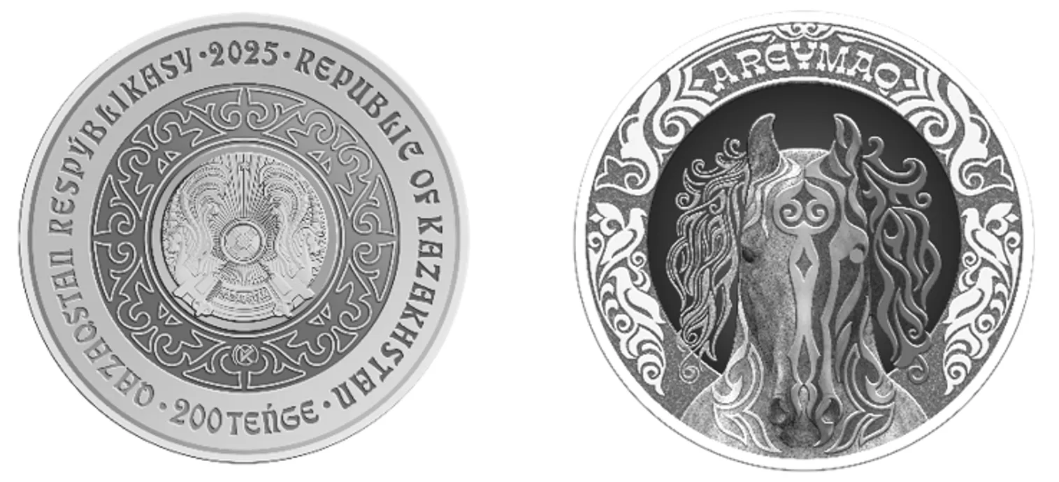 Монета символизирует священного аргымака – одно из главных животных в тюркской культуре, олицетворяющее единство человека и природы. Ее дизайн основан на сочетании натуралистического и трафаретного изображения животного, выполненного в «сакском стиле».