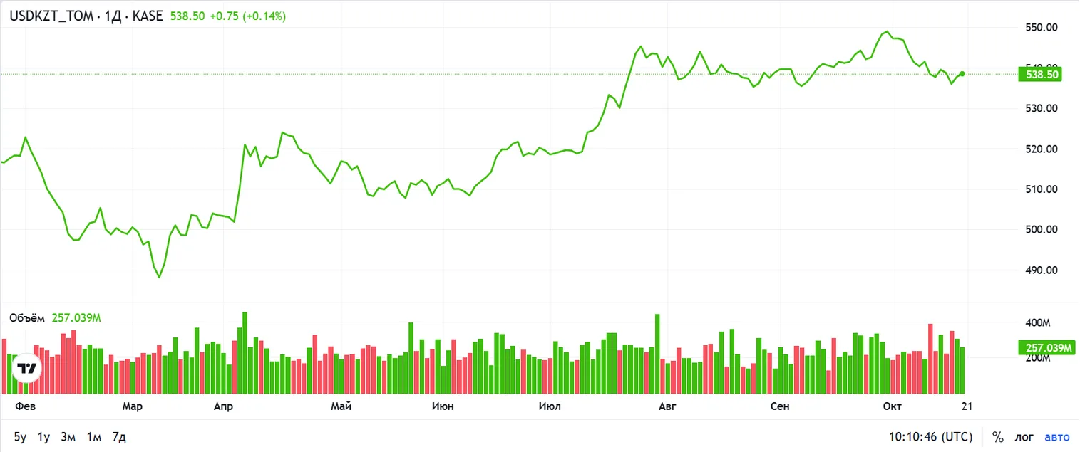 На валютных торгах понедельника инициатива сохранялась на стороне покупателей инвалюты, несмотря на привлекательные тенговые ставки в системе и продажи инвалюты в рамках операций Национального банка. По итогам торгов понедельника средневзвешенный курс по паре USD/KZT закрылся на отметке 538,09 тенге за доллар (+1,61 тенге). При этом объем торгов продолжил снижение до 257 млн долларов (-48,3 млн долларов). Покупки инвалюты могли происходить как вследствие бегства от риска со стороны локальных инвесторов, так и в целях оплаты казахстанскими компаниями импортных контрактов и погашения или обслуживания внешних обязательств. Дополнительное давление мог оказать неблагоприятный внешний фон – снижение цен на нефть наряду с ростом индекса доллара.
