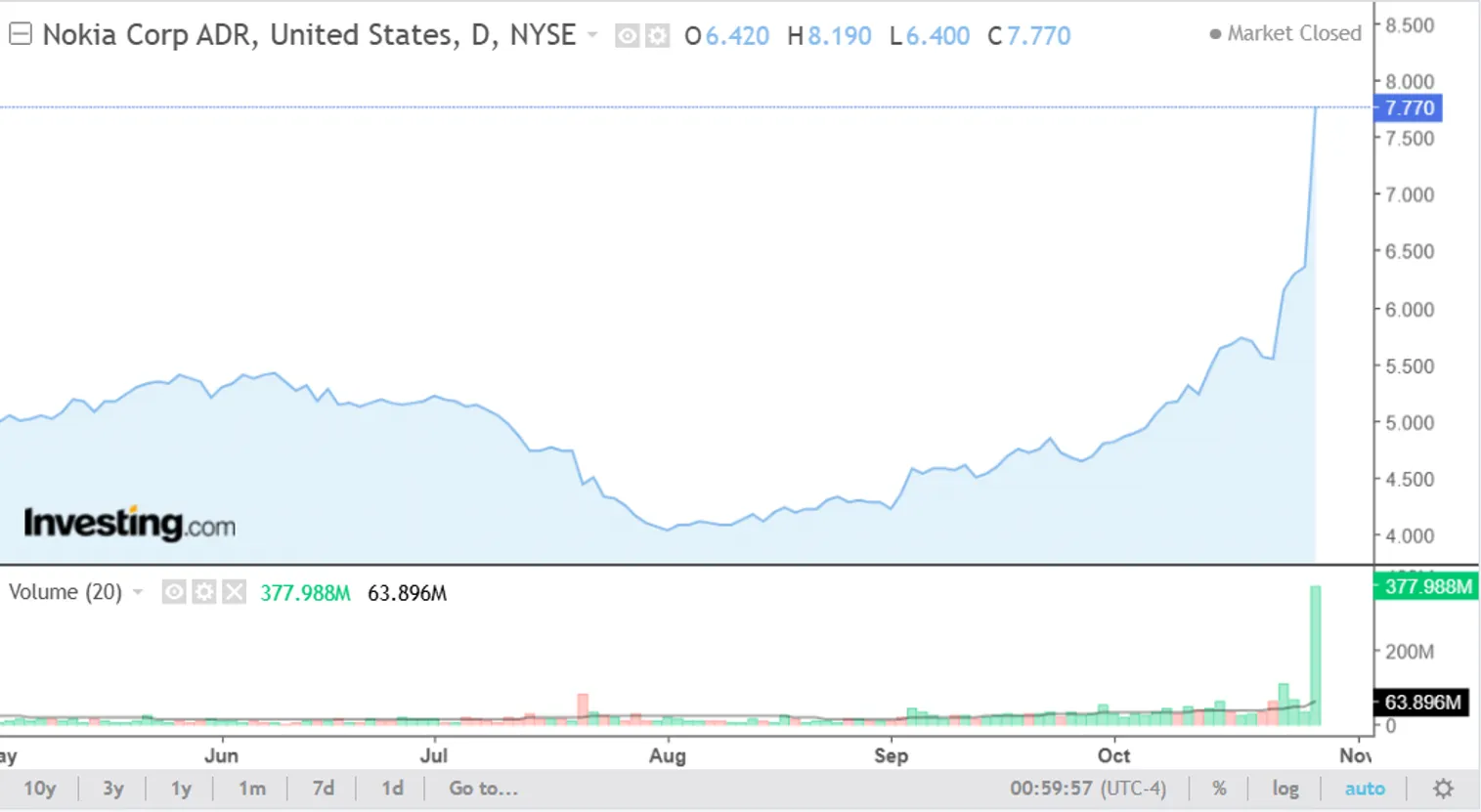 Диаграмма 2. Акции Nokia: