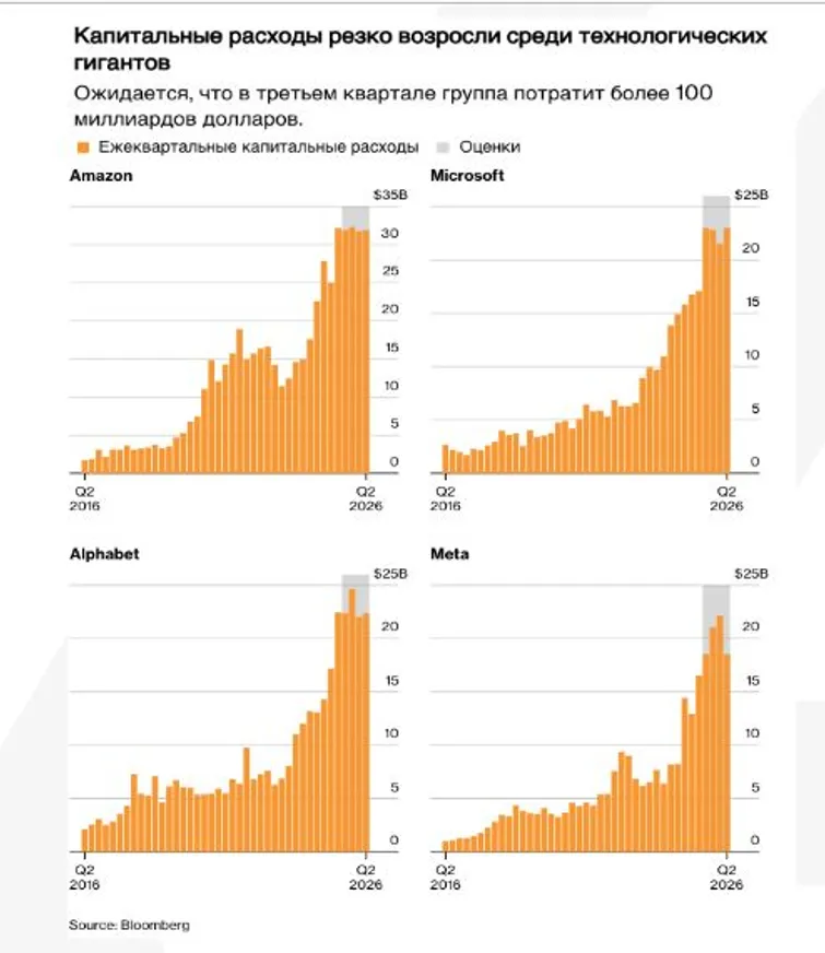 Позитивным катализатором остаются корпоративные отчёты: прибыль компаний из S&P 500 по итогам III квартала, по данным FactSet, растёт на 10,7% против ожидавшихся 8%. Сильные результаты технологического сектора укрепляют уверенность в устойчивости прибыли, хотя оценки по-прежнему требуют подтверждения ростом выручки в 2026 году. Тема искусственного интеллекта остаётся главным драйвером роста. Несмотря на разнородные результаты мегакэпов (Meta и Microsoft слабее ожиданий, Apple и Amazon лучше), совокупное влияние сектора вновь вывело Nasdaq на рекорд.