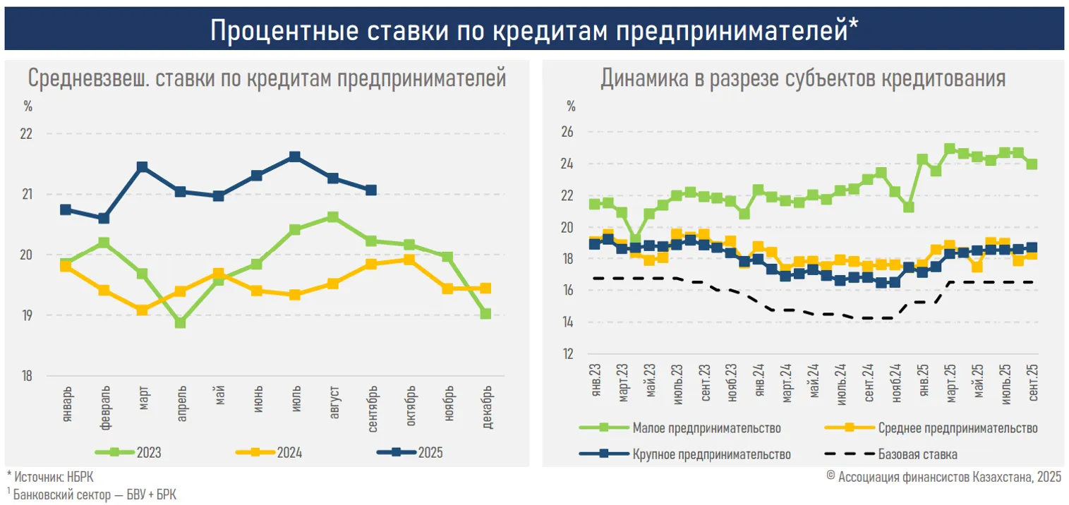 Драйверами роста кредитования за январь — сентябрь стали крупный и средний бизнес, что отражает их более высокую кредитоспособность, понятную и предсказуемую финансовую информацию, устойчивость денежных потоков и наличие качественного залогового обеспечения. Эти факторы позволяют банкам быстрее и в большем объёме одобрять их заявки, формировать более крупные лимиты и концентрировать выдачи в сегментах с более низким уровнем риска, что поддерживало рост кредитования даже вопреки ужесточению денежно-кредитных условий.