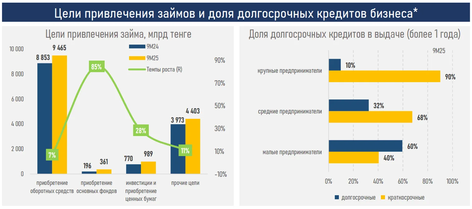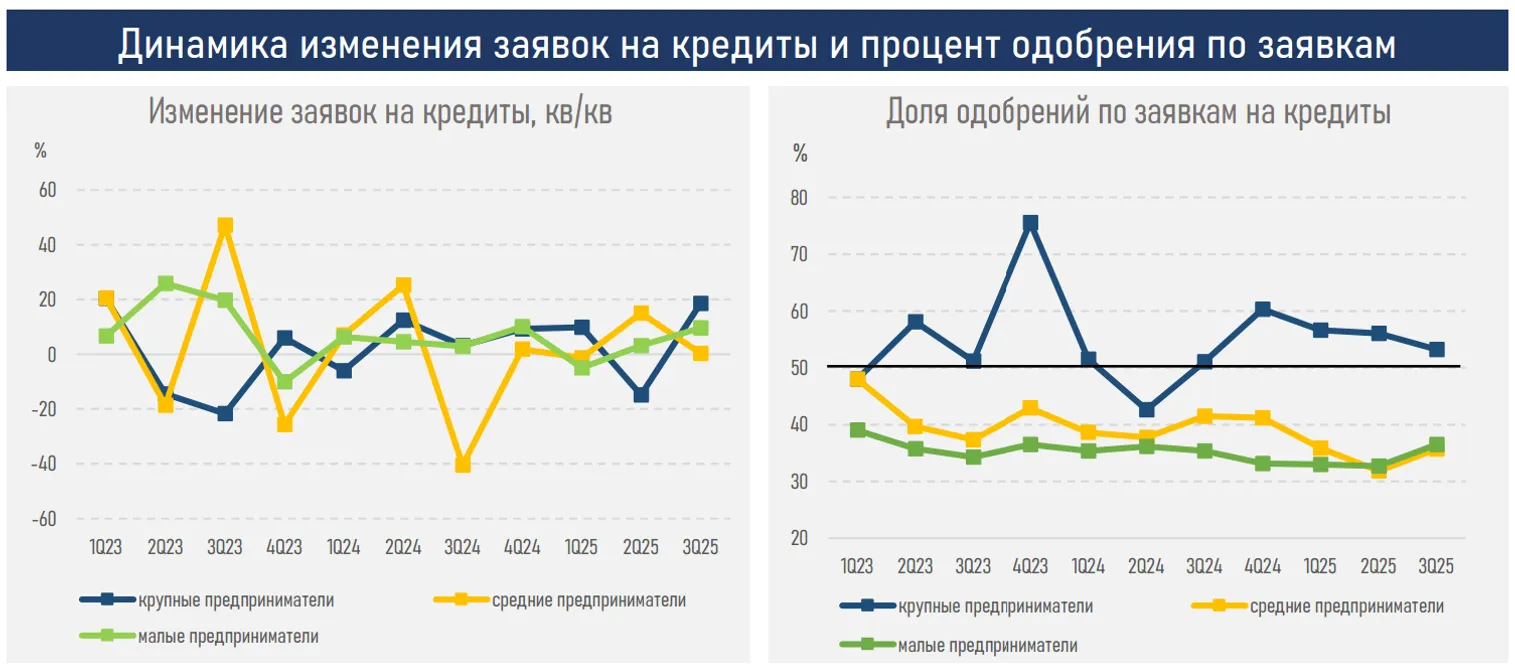 На стороне МСБ сохраняется интерес к более длинным займам благодаря расширению доступа к льготным инструментам. Эти программы смягчают влияние от повышения ставок и позволяют МСБ привлекать ресурсы для оборотного капитала, инвестиций и обновления основных средств, несмотря на более высокую чувствительность к стоимости заимствований.
