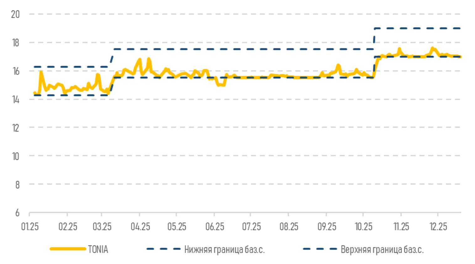 Диаграмма 2. Динамика коридора процентных ставок и ставки TONIA:
