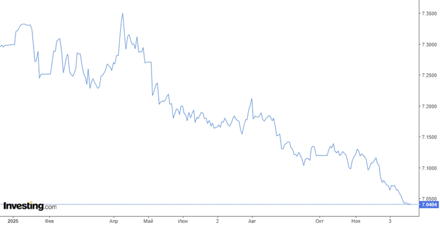 Решение принято вопреки слабым экономическим данным за ноябрь, курс USD/CNY завершает год снижением на 3,5%