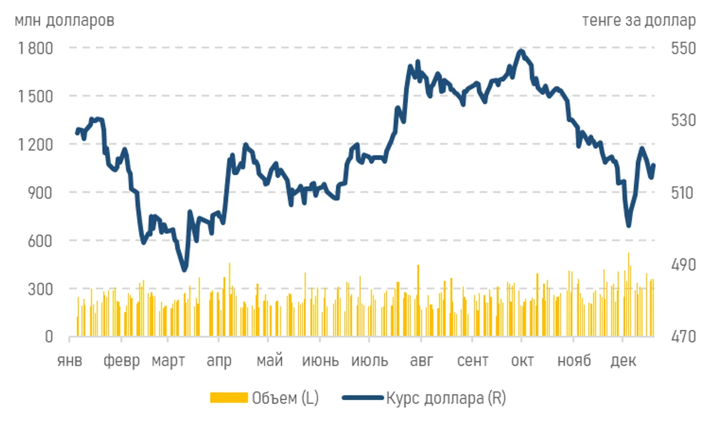 В пятницу на валютном рынке KASE перевес был на стороне покупателей инвалюты. По итогам биржевых торгов курс USD/KZT вырос до 517,57 тенге за доллар (+3,45 тенге). При этом объем торгов остается все еще высоким, составляя 354,2 млн долларов (не изменился). Против тенге могли играть отдельные всплески спроса на инвалюту в рамках оплаты импортных контрактов, погашения и обслуживания внешнего долга, а также сезонных особенностей (привлекательный курс приобретения и зарубежные поездки). Кроме того, участники рынка, вероятно, отыгрывали снижение нефтяных котировок и рост индекса доллара США во время валютных торгов.