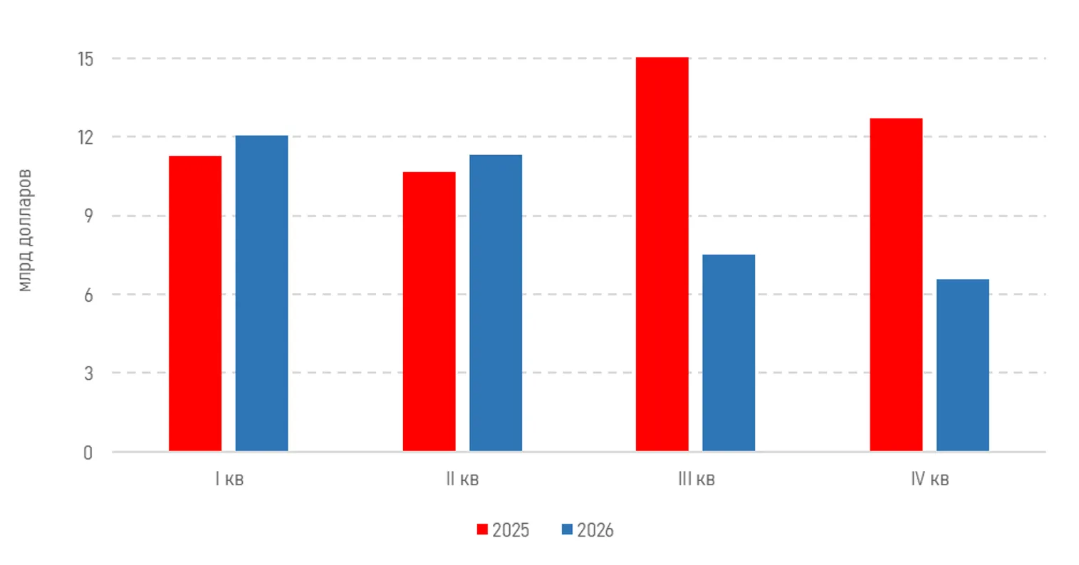 На торгах понедельника наблюдался относительный баланс между спросом и предложением инвалюты на валютном рынке. Так, по итогам торгов средневзвешенный курс USD/KZT закрепился у отметки 504,15 тенге за доллар (-0,09 тенге) при объеме торгов в 371,8 млн долларов. Вероятно, продажи инвалюты Национальным банком, крупными игроками и субъектами КГС полностью компенсировали спрос на инвалюту, традиционно увеличивающийся в конце года в связи с оплатой импортных контрактов, обслуживанием внешних обязательств и пр. Напомним, что в текущем квартале объем обязательств к выплате по внешнему долгу составляет 12,7 млрд долларов (12,1 млрд долларов в первом квартале 2026 года).