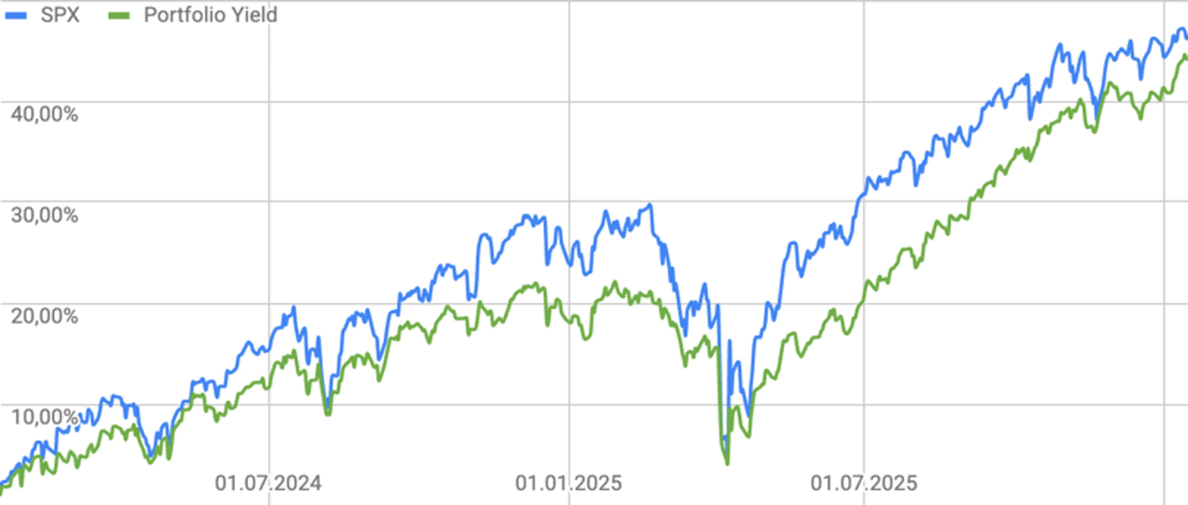 Перформанс и относительная сила портфеля vs S&P 500 за последние 2 года. Источник: Google Finance, Freedom Broker