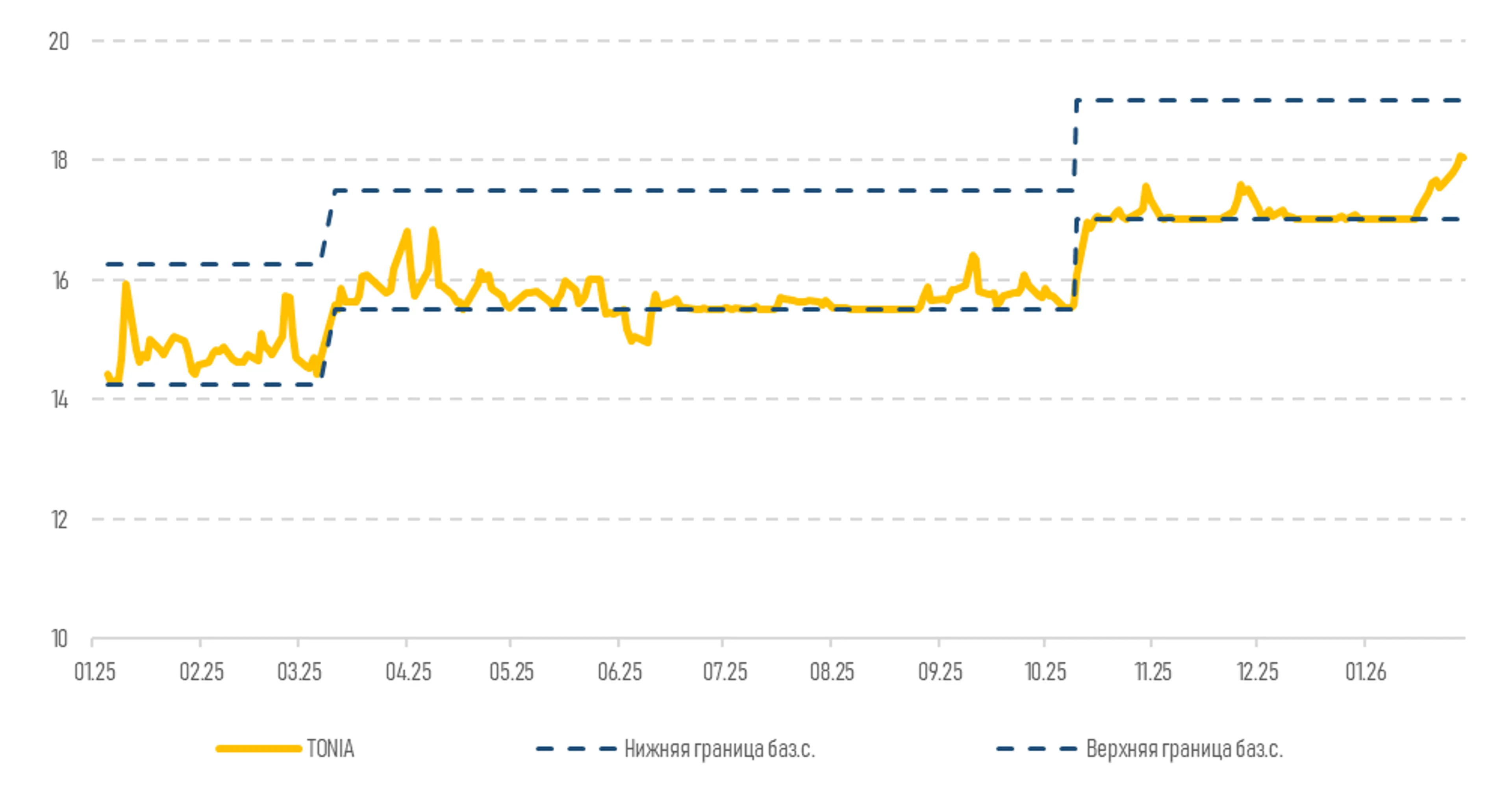Диаграмма 2. Динамика коридора процентных ставок и ставки TONIA: