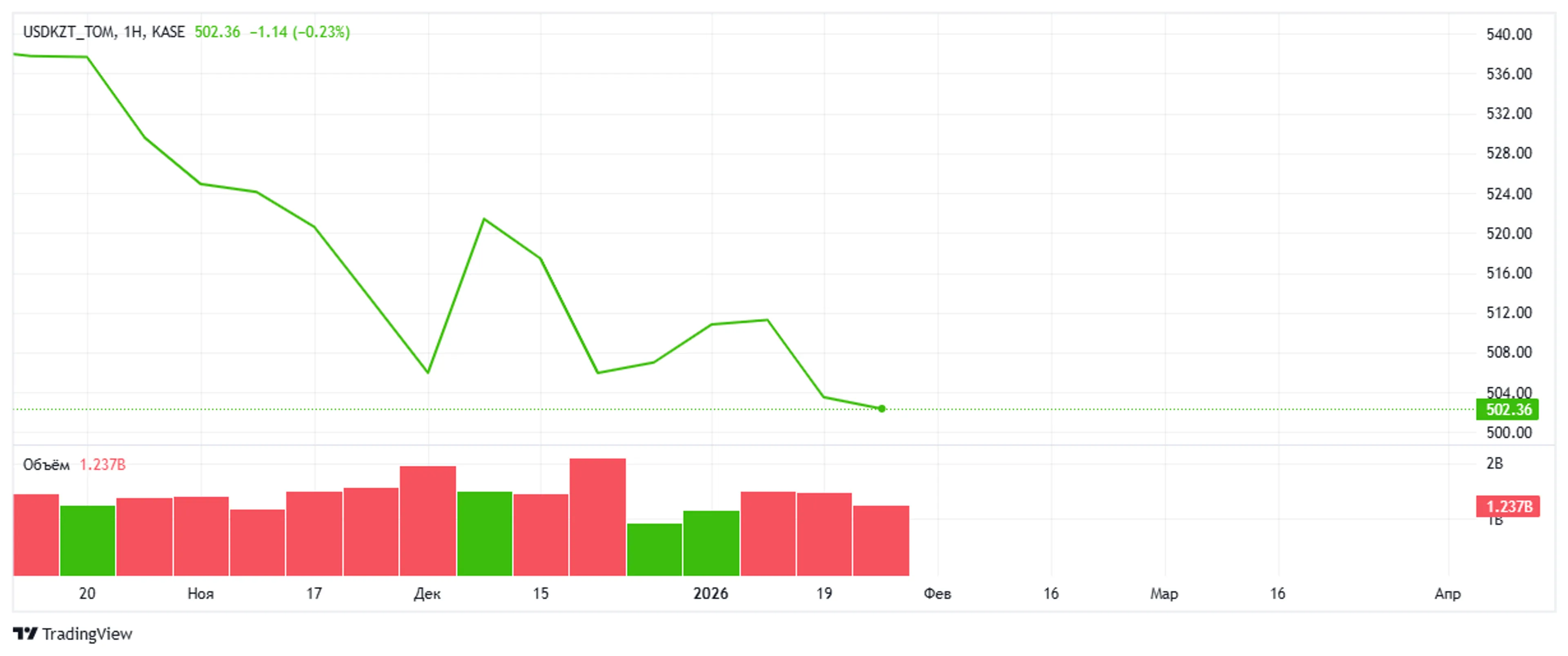 По информации KASE, на торгах минимальный курс сложился на уровне 500,10 тенге за доллар, максимальный – 503,65 тенге, курс закрытия – 503,00 тенге. Объем торгов по американской валюте составил 475 млн 974 тыс. долларов. Число сделок по операциям с валютой – 1 125. По данным kurs.kz, в обменных пунктах столицы максимальный курс продажи американской валюты на 17:03 составил 506 тенге, Алматы – 506 тенге.