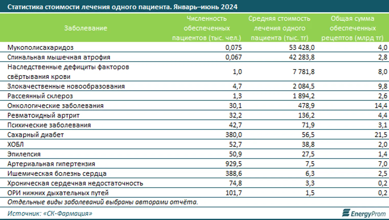 Например, на закупку лекарств для 75 казахстанцев с мукополисахаридозом в первом полугодии 2024 года потратили 4 млрд тенге, то есть по 53,4 млн тенге на одного человека. Численность пациентов с ишемической болезнью сердца в Казахстане составляет 388,6 тыс. человек, лечение каждого из них обходится в 6,3 тыс. тенге. Казахстанцев с артериальной гипертензией, которым требуются бесплатные лекарства, в стране почти 1 млн, лечение каждого оценивается в 7,5 тыс. тенге. И именно от пациентов из этих категорий чаще всего поступают жалобы на проблемы с лекарственным обеспечением.