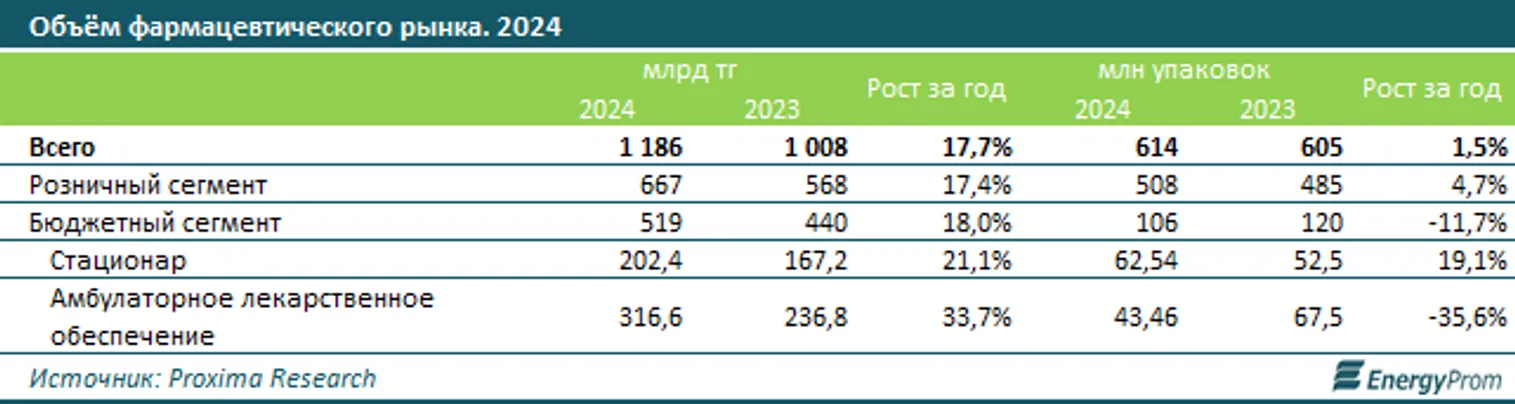 Закупки лекарств за счет государства и ФОМС в стоимостном объеме фармацевтического рынка заняли долю в 43,8% и достигли 519 млрд тенге. Эти данные не совпадают с показателями ТОО «СК-Фармация» за 2024 год, поэтому приводим их только для справки.