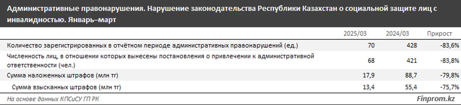 К сожалению, находятся граждане, способные совершать противоправные действия даже в отношении людей с особыми потребностями. Так, за январь–март 2025 года в Казахстане было зарегистрировано 70 административных правонарушений законодательства в сфере социальной защиты лиц с инвалидностью, против 428 случаев годом ранее.