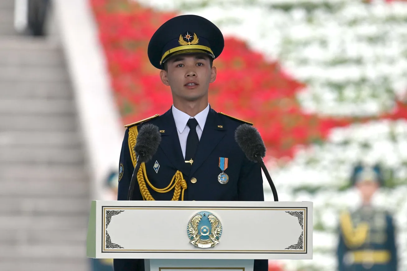 «Доброй традицией стало вручение офицерских погонов лучшим курсантам под нашим небесно-голубым знаменем, которое воодушевляет и укрепляет патриотический дух воинов. В такие моменты каждый гражданин глубже осознает, что служение родной стране – это его сыновний долг, что он является потомком отважных батыров, доблестно защищавших нашу Отчизну. Военнослужащие, стоящие на страже рубежей государства, достойно продолжают славные традиции храбрых предков. Уверен, вы всегда будете высоко держать священный флаг нашей страны. Пусть гордо реет наш небесно-голубой стяг! Мира и благополучия нашей Родине!» – пожелал глава государства.