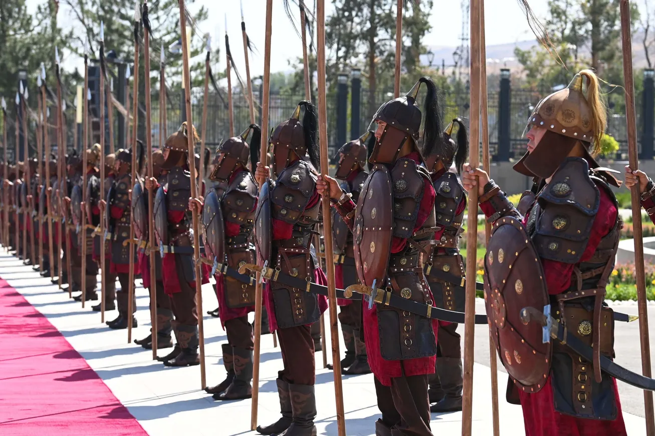 караула Касым-Жомарт Токаев и Садыр Жапаров совершили обход строя. Далее главы государств представили друг другу