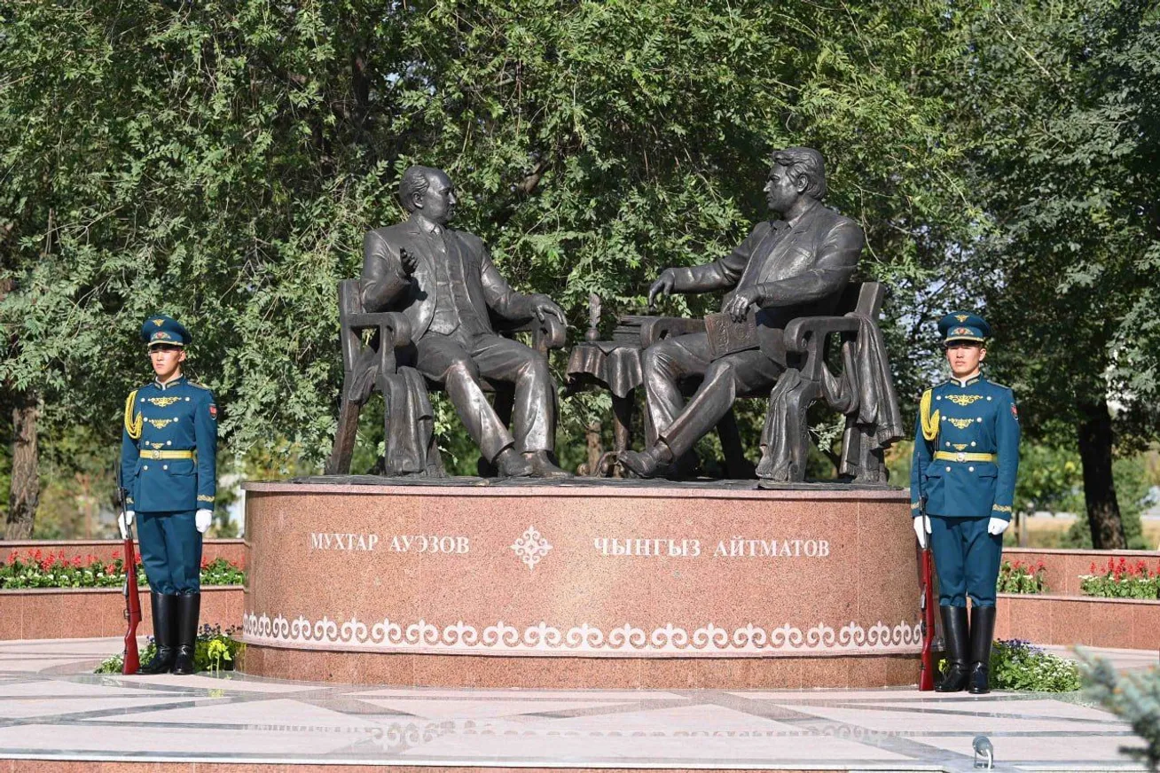 Монумент посвящен выдающимся писателям двух народов – Мухтару Ауэзову и Чингизу Айтматову