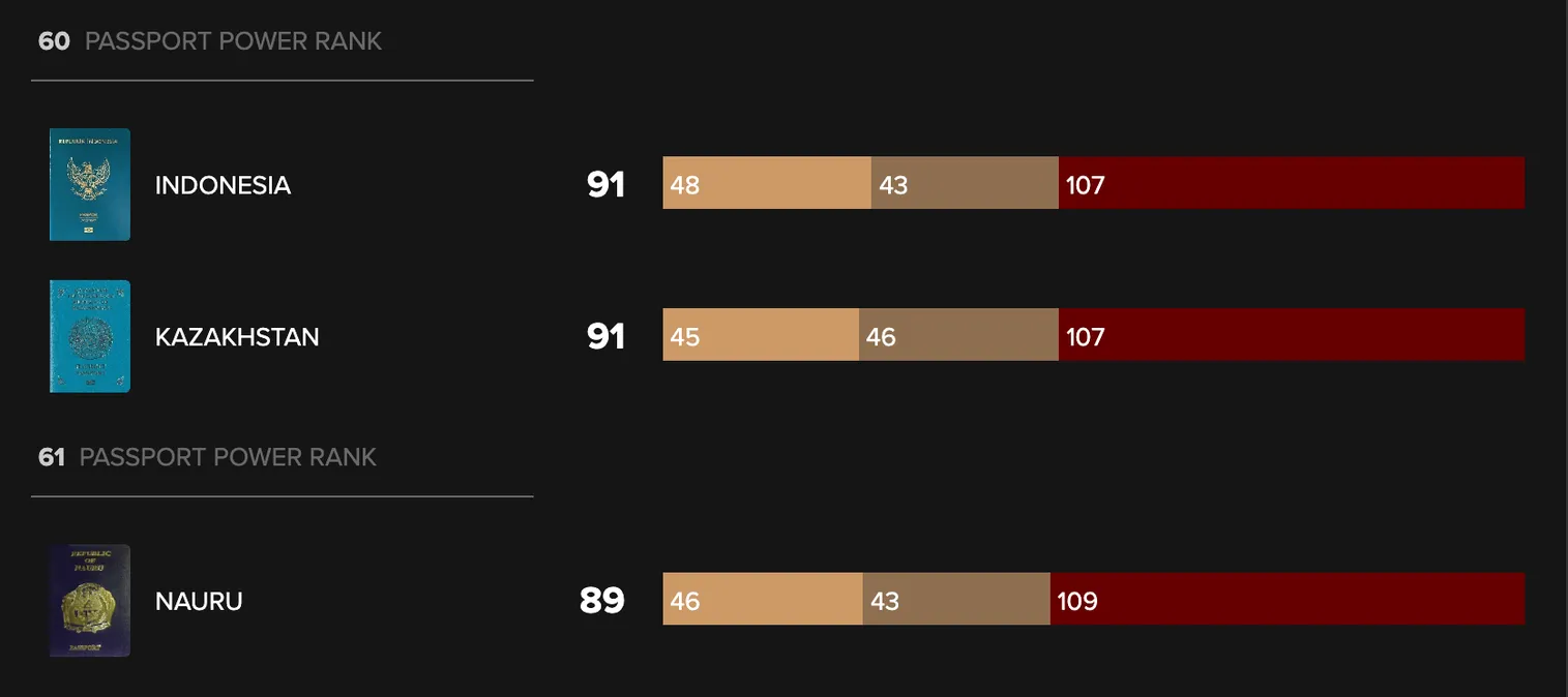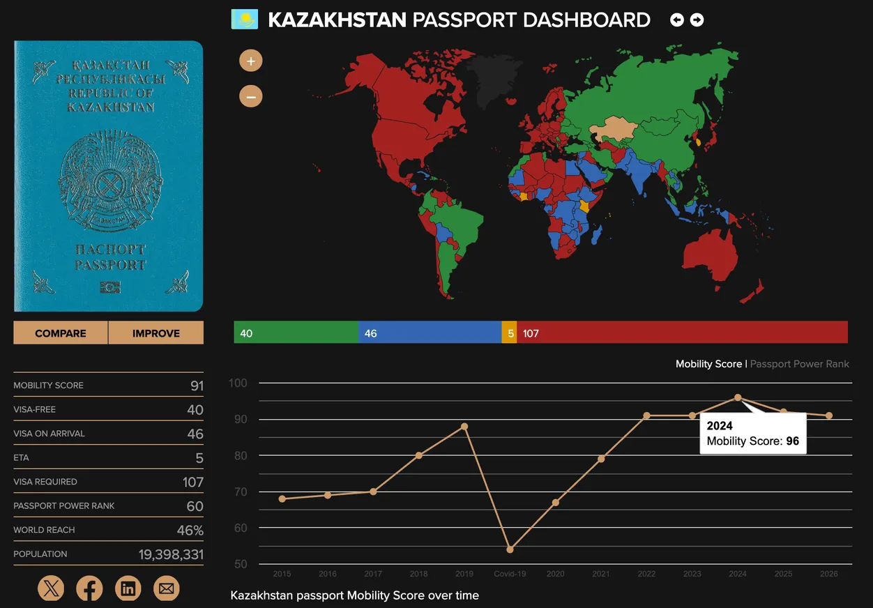 Сила паспорта: Казахстан делит 60 место с Индонезией