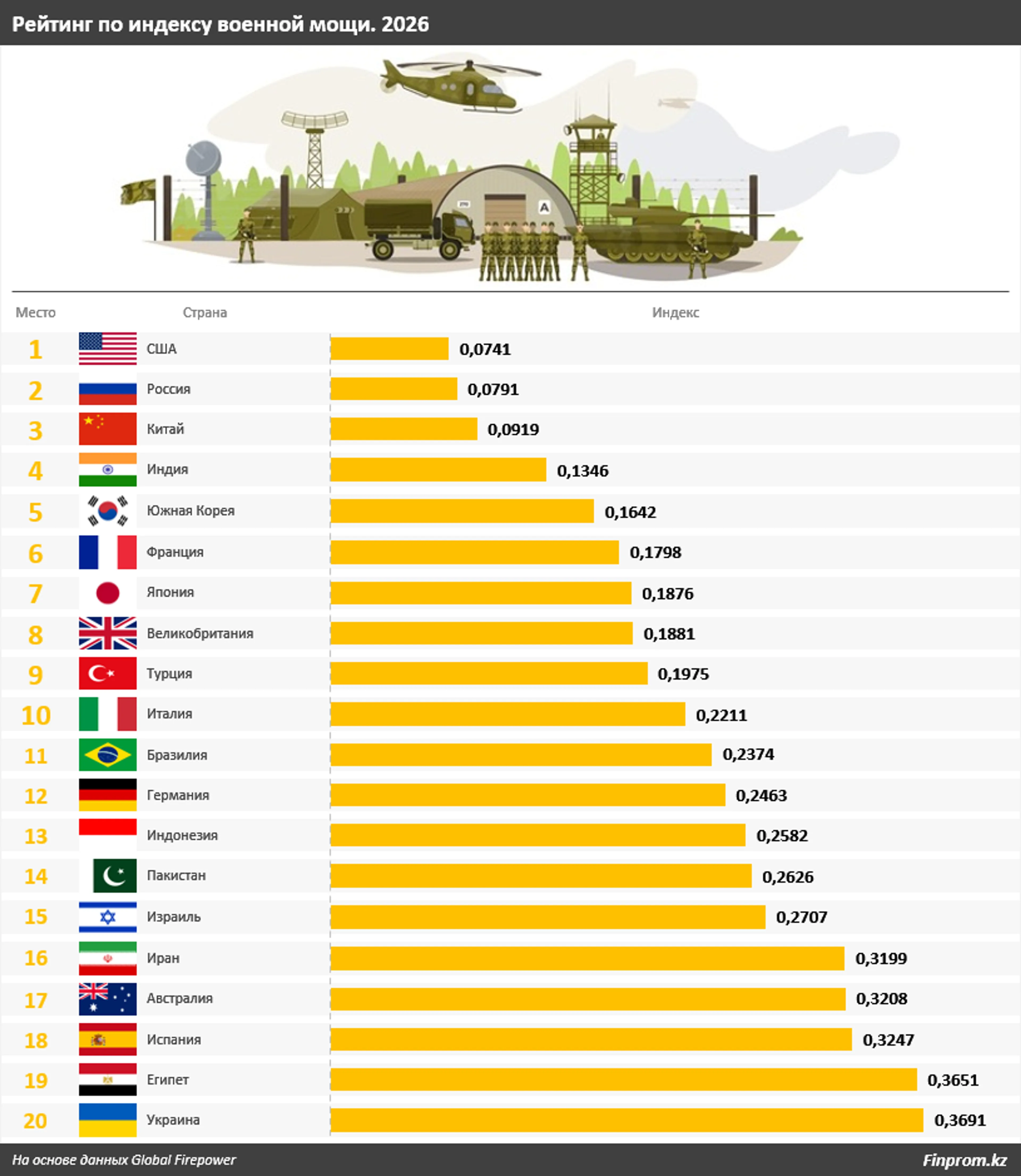 Военная мощь вновь становится ключевым показателем реального веса государства на международной арене. Рейтинг стран от Global Firepower по индексу военной мощи на 2026 год отражает эту трансформацию достаточно наглядно, пишет Finprom.kz.