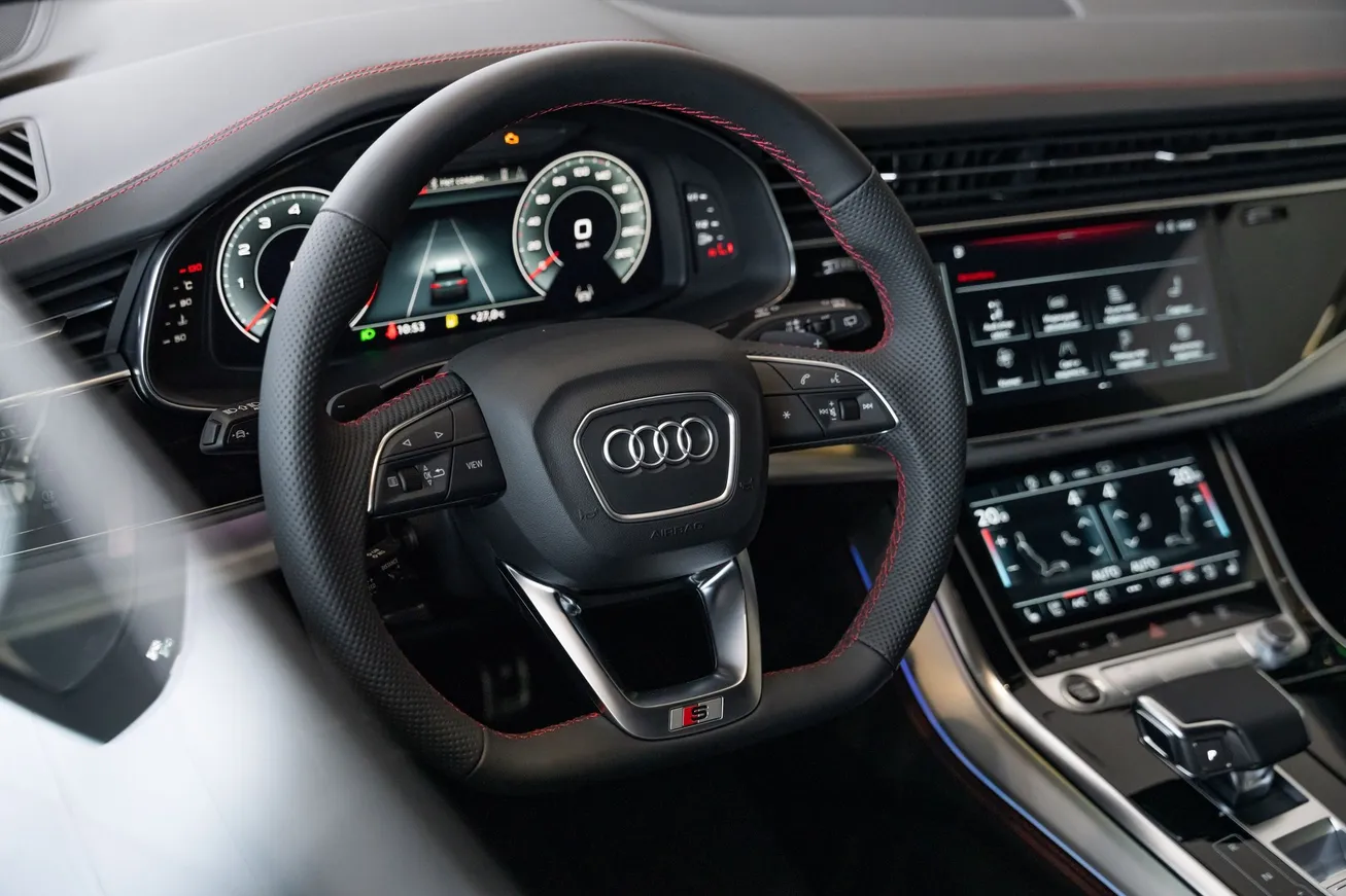 Обновлённый Audi Q7 впечатляет вниманием к деталям. Новые колёсные диски и эксклюзивные цвета кузова подчёркивают индивидуальность и статус самого универсального SUV в линейке Audi. Просторный салон идеально подойдёт и для деловых поездок, и для путешествий всей семьёй. Контрастная прострочка, ярко-красные ремни безопасности и высококачественные материалы создают атмосферу премиальности и подчёркивают мощный характер автомобиля.