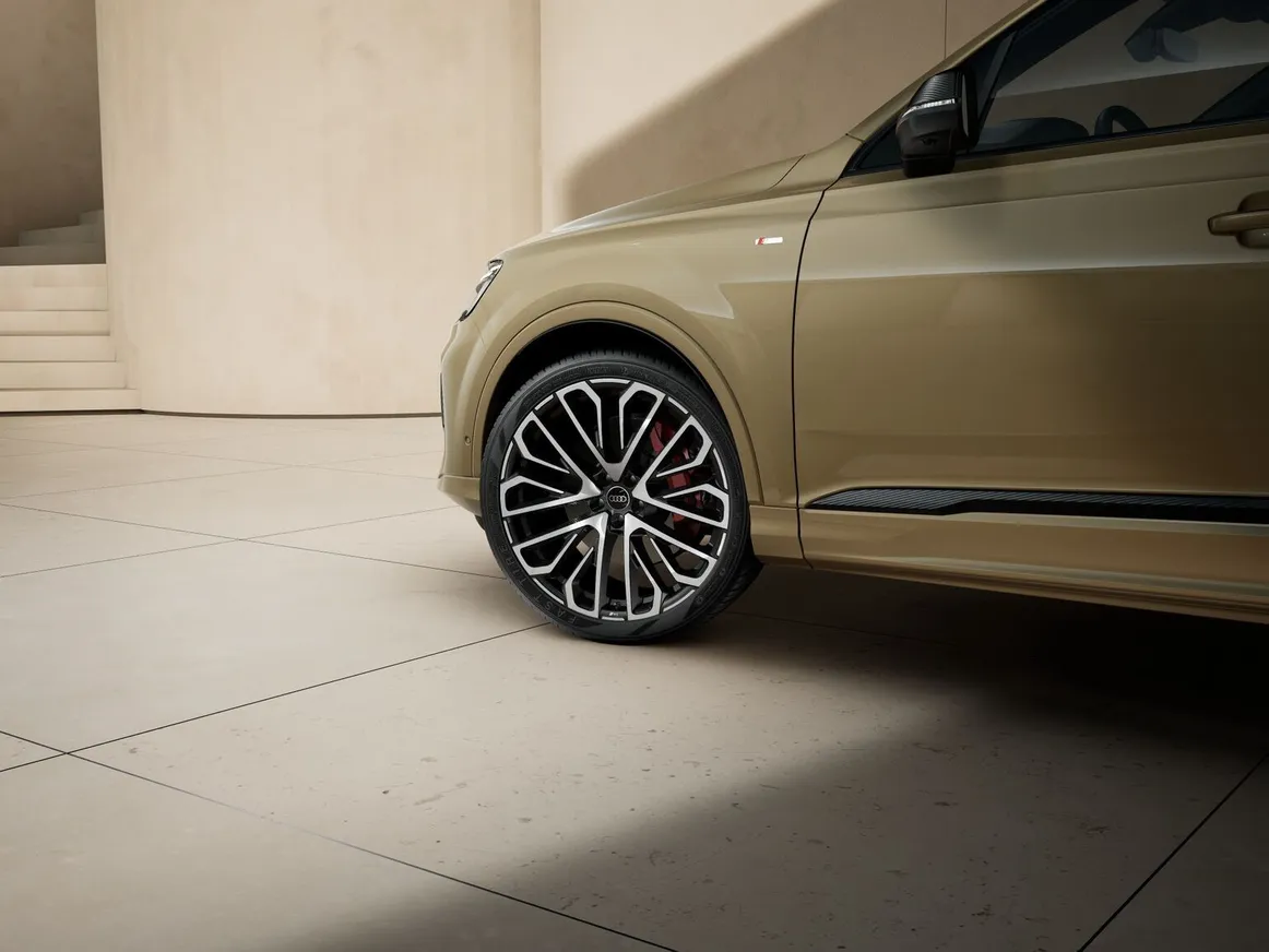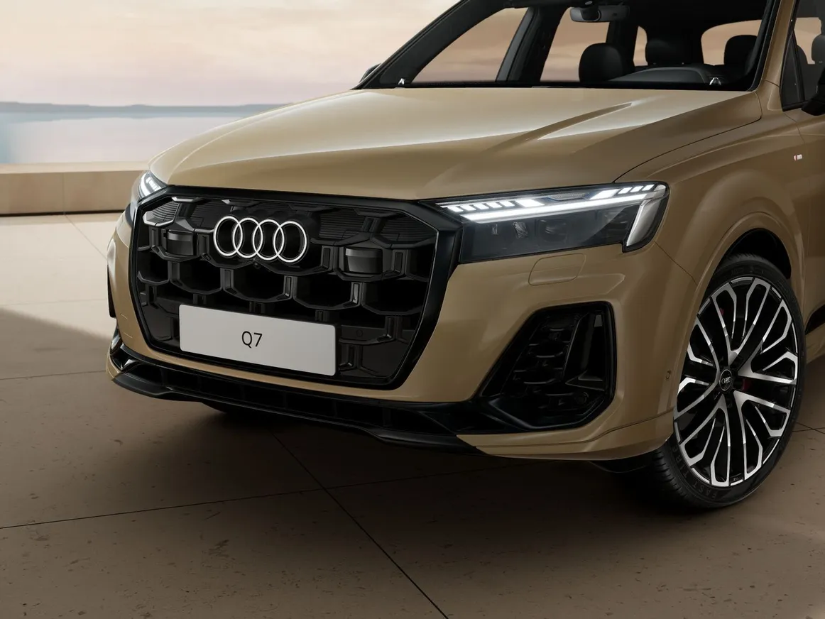 Обновлённый Audi Q7 — это воплощение роскоши, продуманного дизайна и передовых технологий. Его выразительный облик отражает новый дизайнерский язык Audi: чистые линии, мощные формы и уверенный характер. Выразительные цвета кузова и фирменные колёса подчёркивают его статус. Решётка радиатора Singleframe и поднятые фары формируют харизматичный облик передней части. Новый дизайн воздухозаборников с цветной рамкой дополняет целостный и уверенный образ.