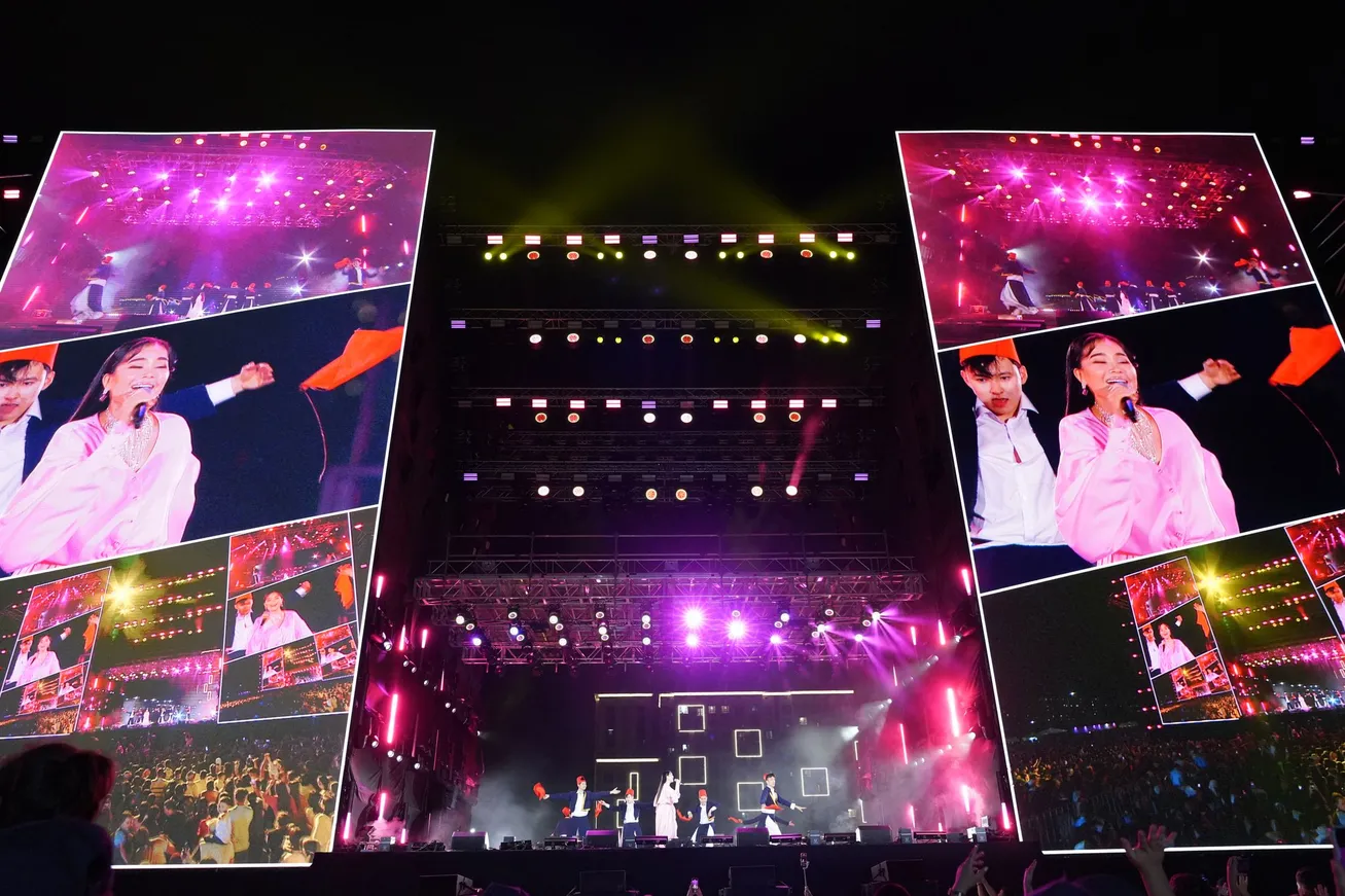Специально для фестиваля установили уникальную сцену высотой 21 метр – это эквивалент 7-этажного здания. Четырехсторонняя звуковая система обеспечила сбалансированное звучание на всей площади, а 900 м² LED-экранов создавали визуальный эффект полного погружения. Помимо этого, двухуровневая вращающаяся сцена - редкий элемент даже по международным стандартам.