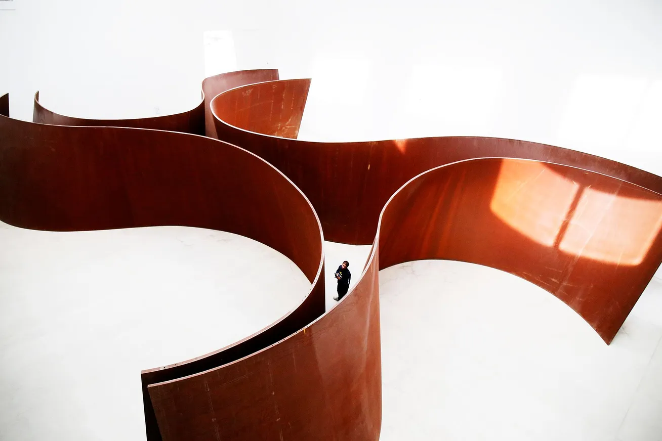 Представители СМИ посетили оба зала в сопровождении экскурсовода, а также поднялись на второй этаж, откуда открылся прекрасный вид на знаковую скульптуру из стали Ричарда Серры, которая расположена на первом этаже музея. Так, в зале площадью 550 квадратных метров, посвященном творчеству знаменитого художника Ричарда Серры, стоит его монументальная скульптура из стали длиной в 23 метра и весом в 155 тонн под названием «Перекресток» (2011).