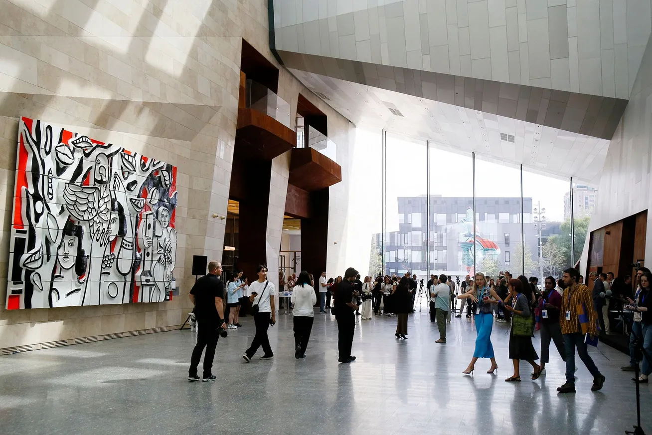 Британско-нигерийский художник Йинка Шонибаре создал для музея «Скульптуру ветра (ТП) II» – 8-метровую алюминиевую композицию, которая напоминает парус, наполненный ветром. Вдохновленный тканями анкара, художник использует яркую ручную роспись, обращаясь к темам культурной идентичности и колониального наследия, которые являются центральными в его творчестве.