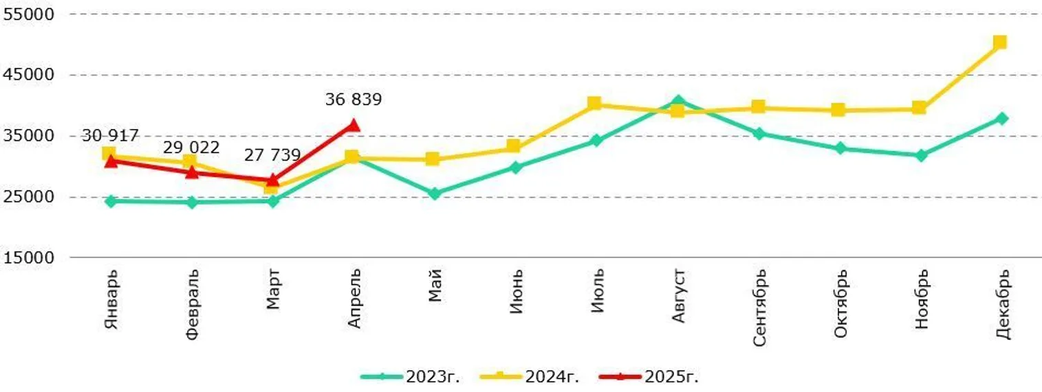 Рис. 3. Динамика количества сделок купли-продажи за 2023-2025 годы