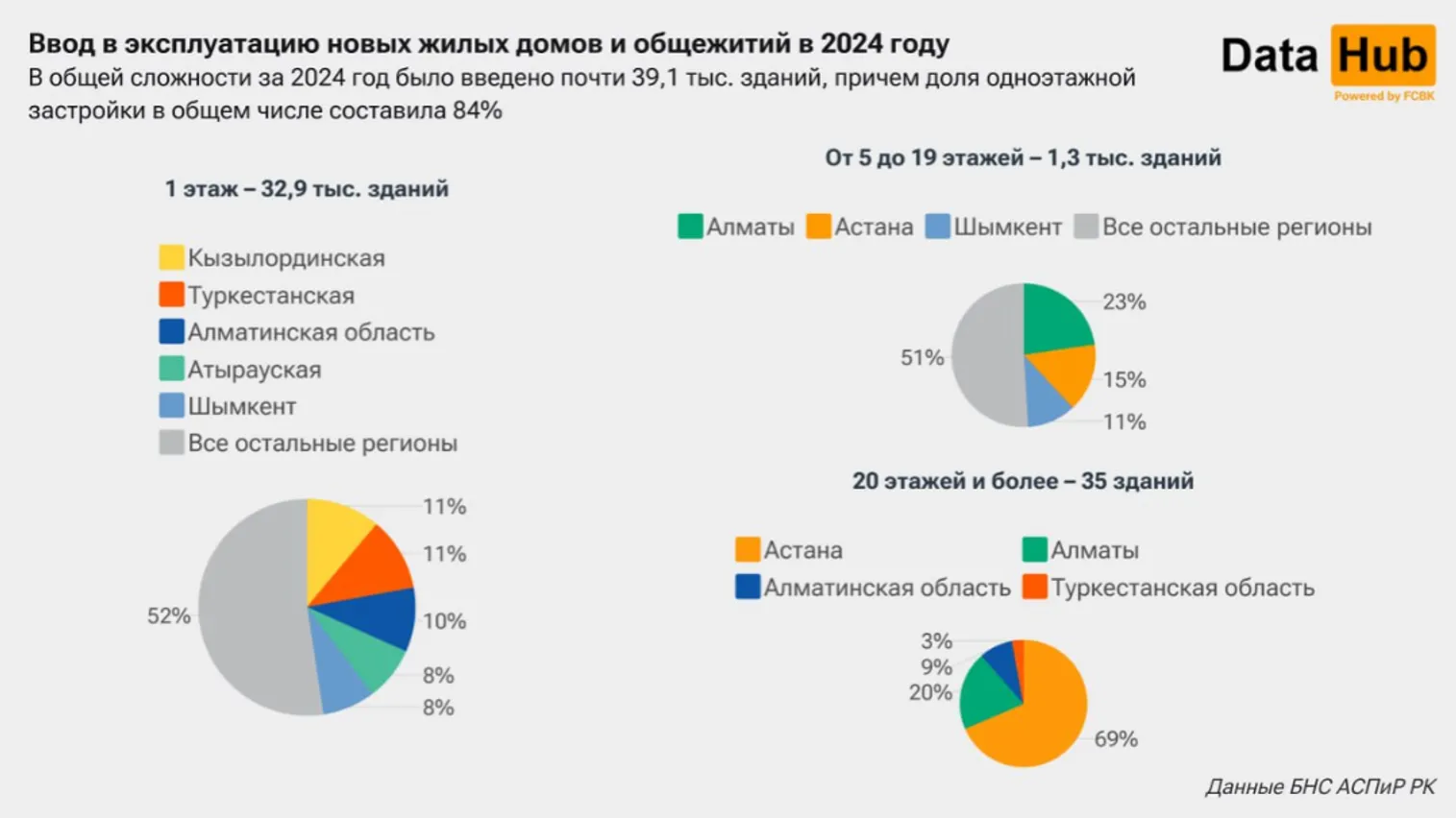 Как поясняет ПКБ, в 2024 году в Казахстане ввели в эксплуатацию 35 новых жилых зданий с этажностью от 20 этажей и более. «По сравнению с 2023 годом разница – всего в два объекта, но актуальный показатель – самый высокий по крайней мере за последние 20 лет», - отмечают аналитики.