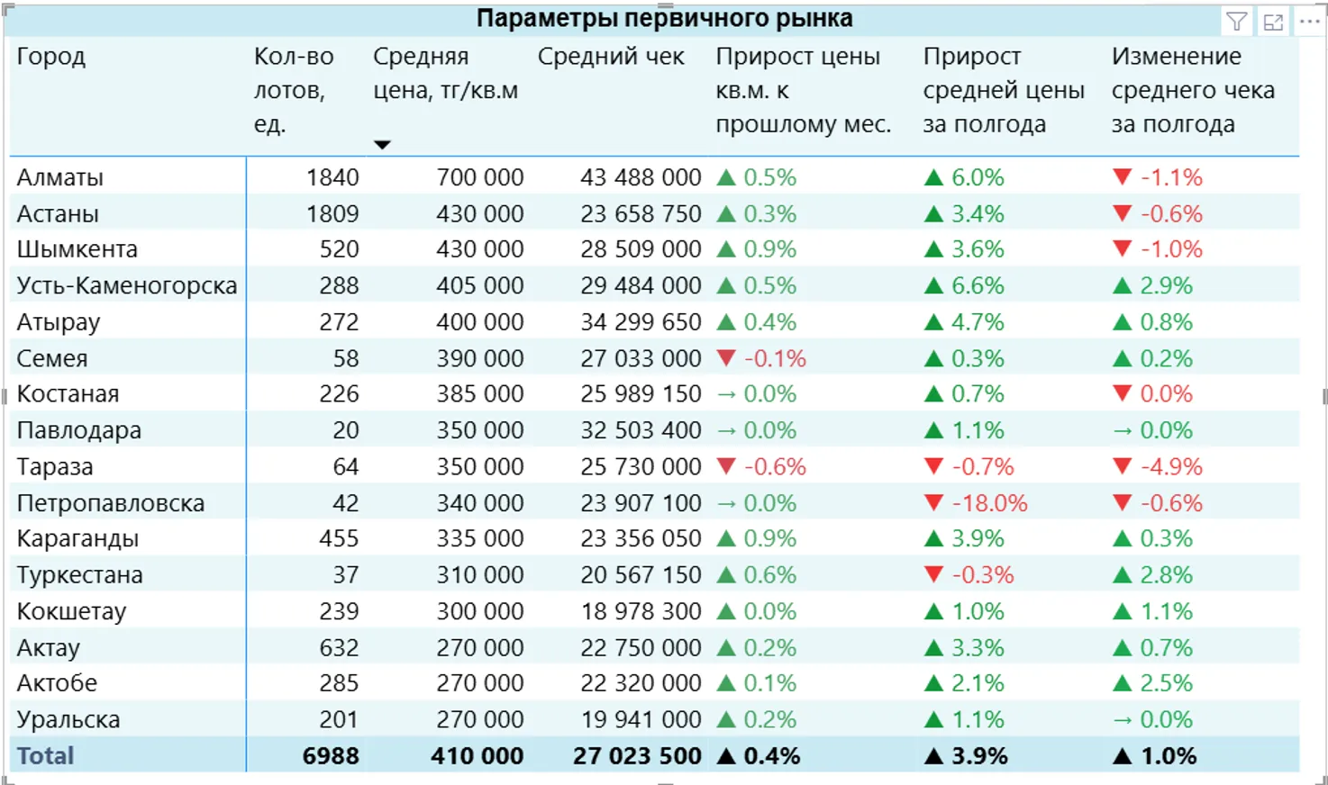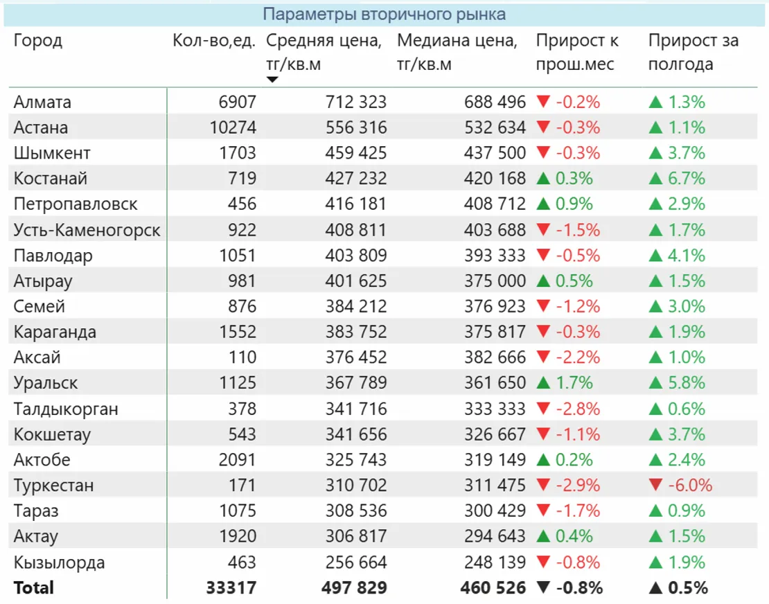Площади квартир за последний год сократились на 3–4 м². В результате стоимость типичной квартиры в Астане и Алматы снизилась в среднем на 1% с начала года.