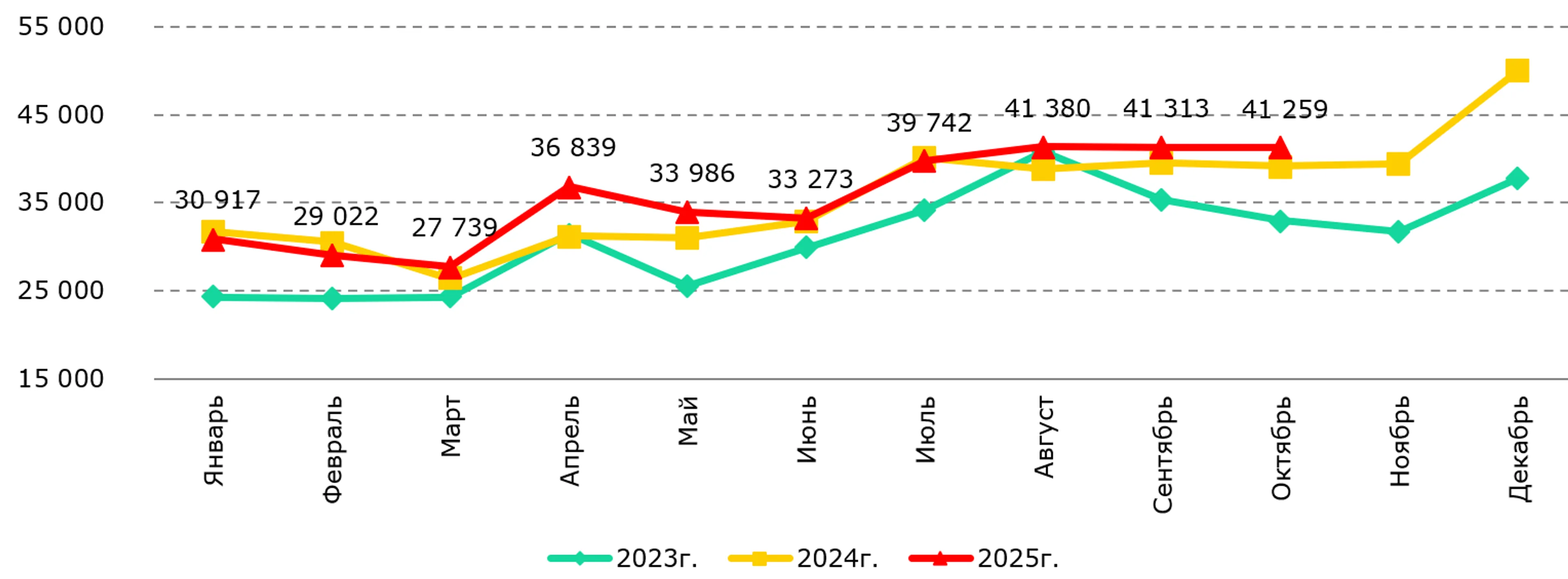 Рис. 2. Динамика количества сделок купли-продажи за 2023-2025 годы