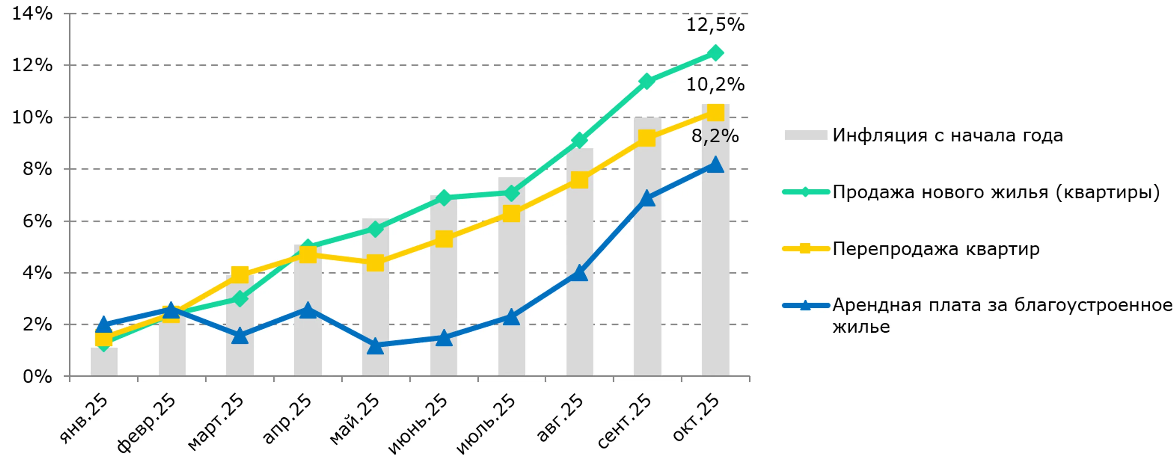 Рис. 1. Изменение цен на рынке жилья с начала 2025 года