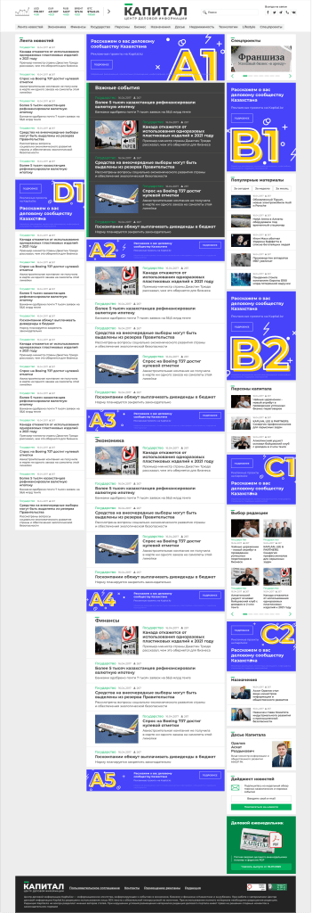 Изготовление и размещение сквозного анонсового баннера на главной странице сайта, ведущего в рубрику «Персоны Капитала».