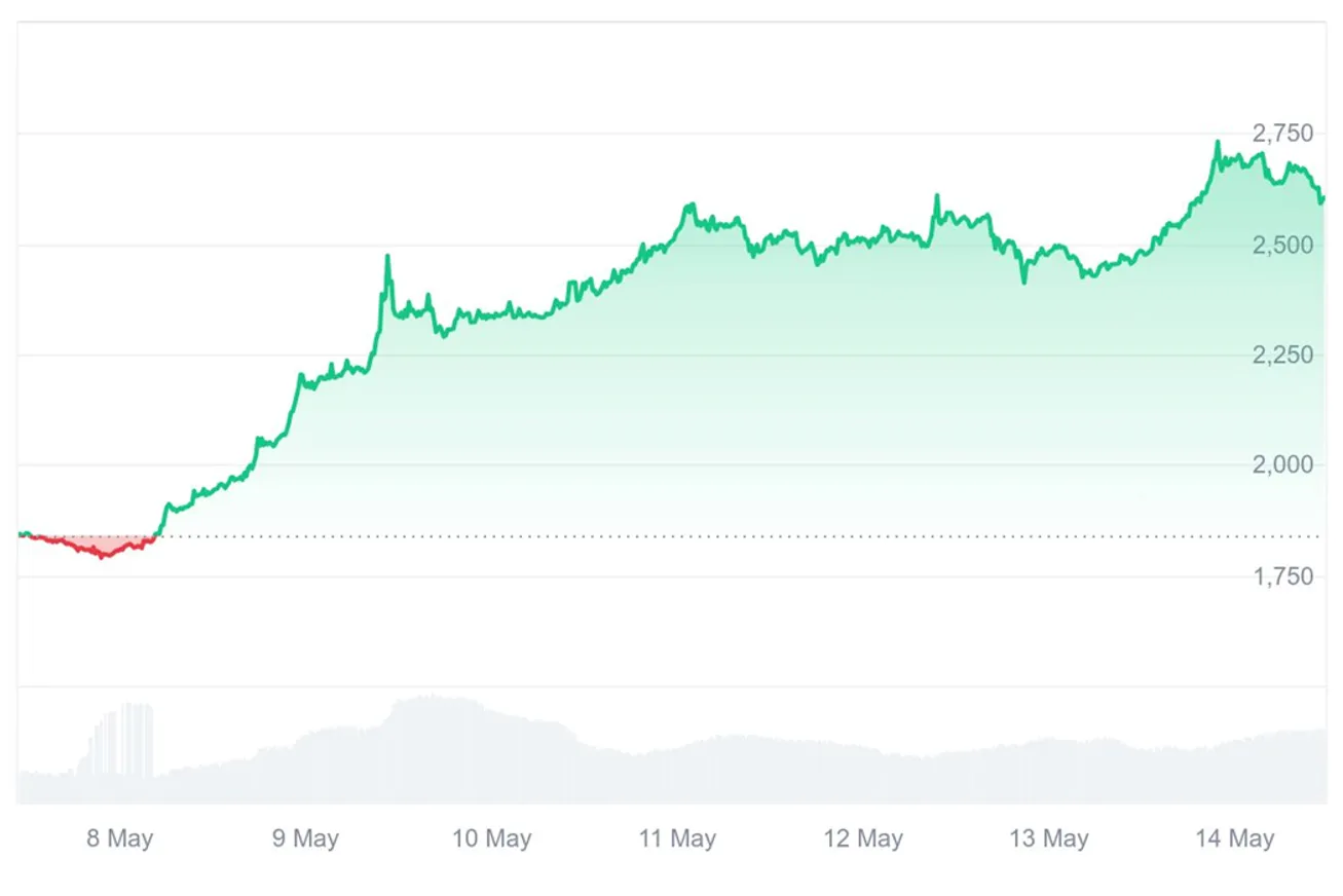 График 3. Стоимость Ethereum (ETH) за неделю с 7 по 14 мая 2025 года