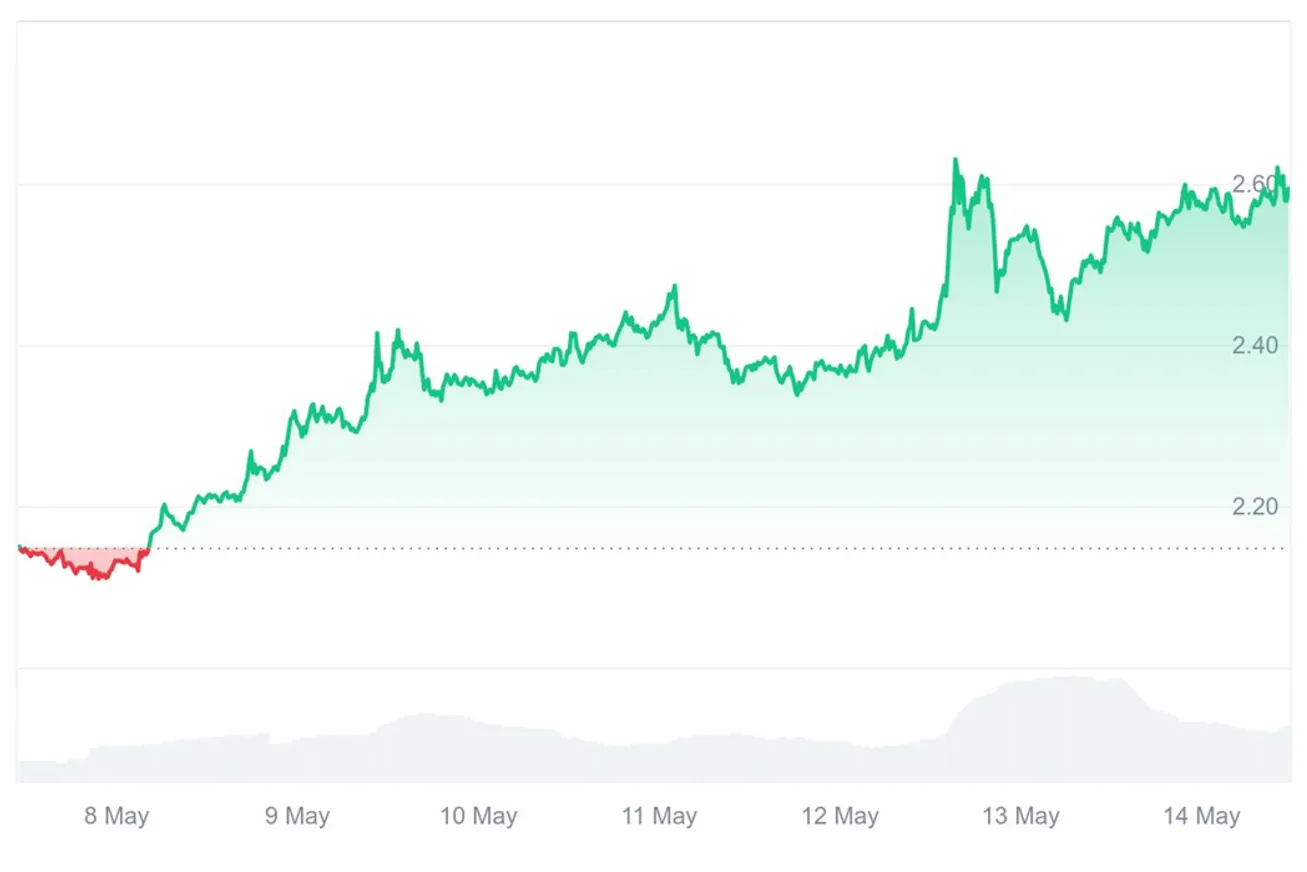 График 4. Стоимость Ripple (XRP) за неделю с 7 по 14 мая 2025 года