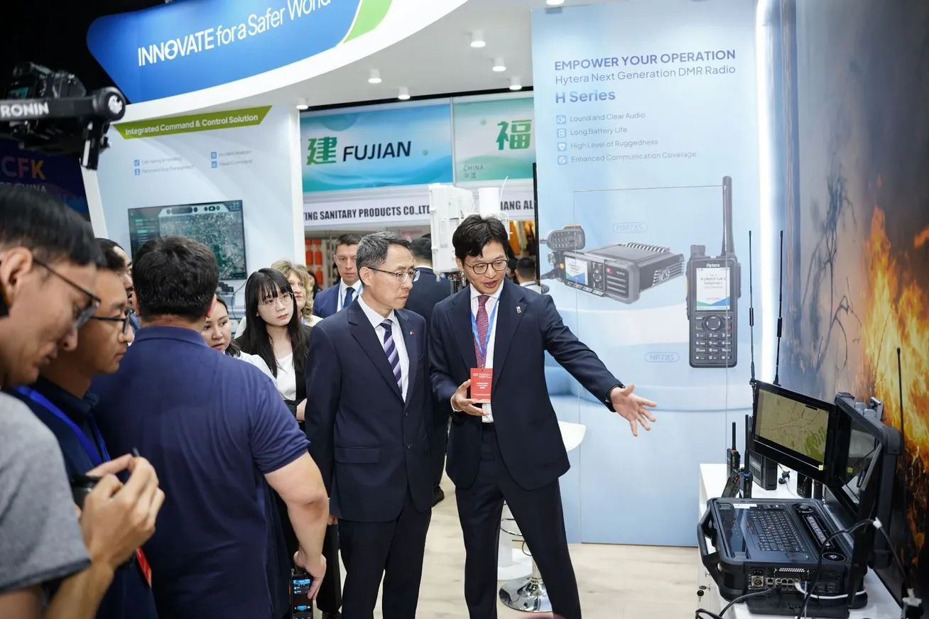 Иван Ван, директор Hytera в Казахстане, представил новейшие решения для критически важной связи Чрезвычайному и Полномочному Послу Китая в Казахстане Хань Чуньлину на выставке CCFK 2025