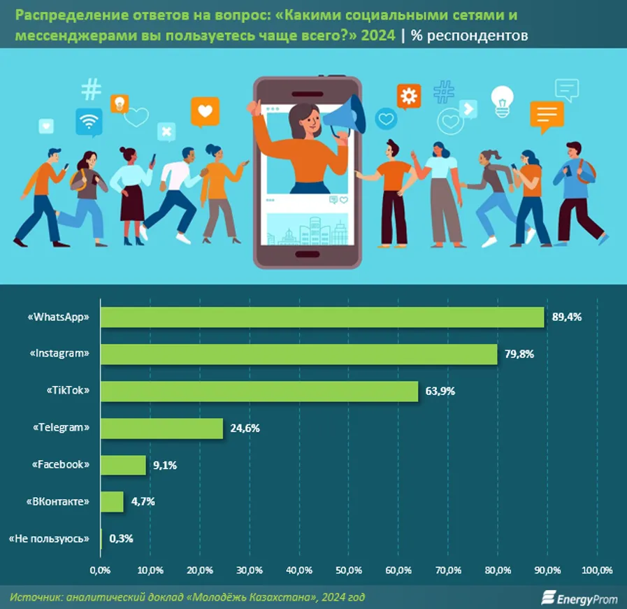 Какими соцсетями и мессенджерами пользуется молодежь в Казахстане
