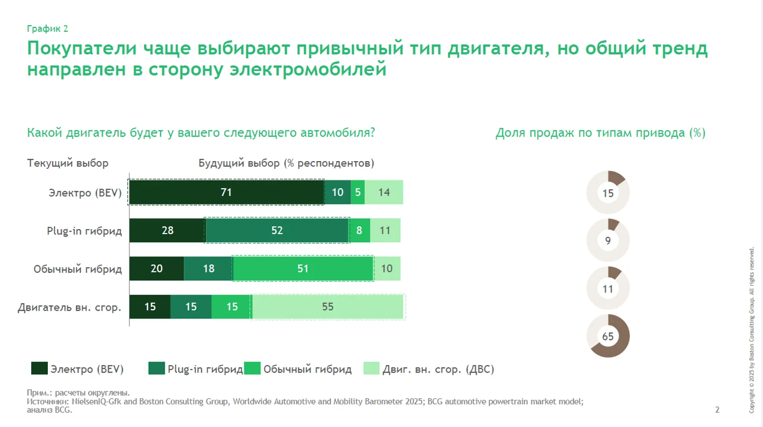 · 71% владельцев электромобилей (BEV) заявляют, что выберут электрокар и в