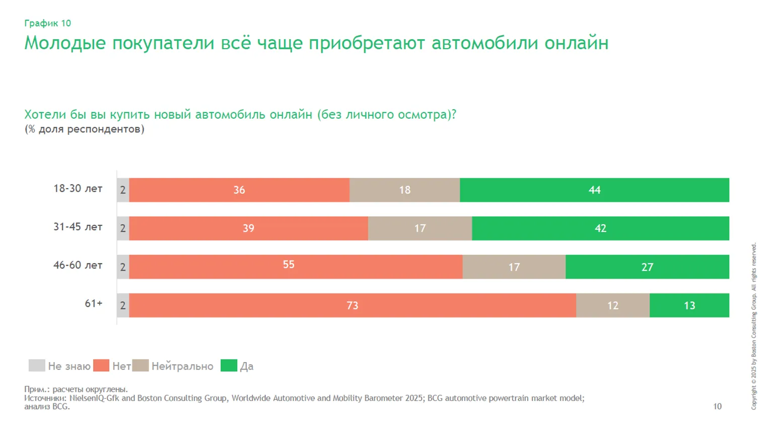 · Более 40% покупателей до 45 лет готовы приобрести автомобиль онлайн — без