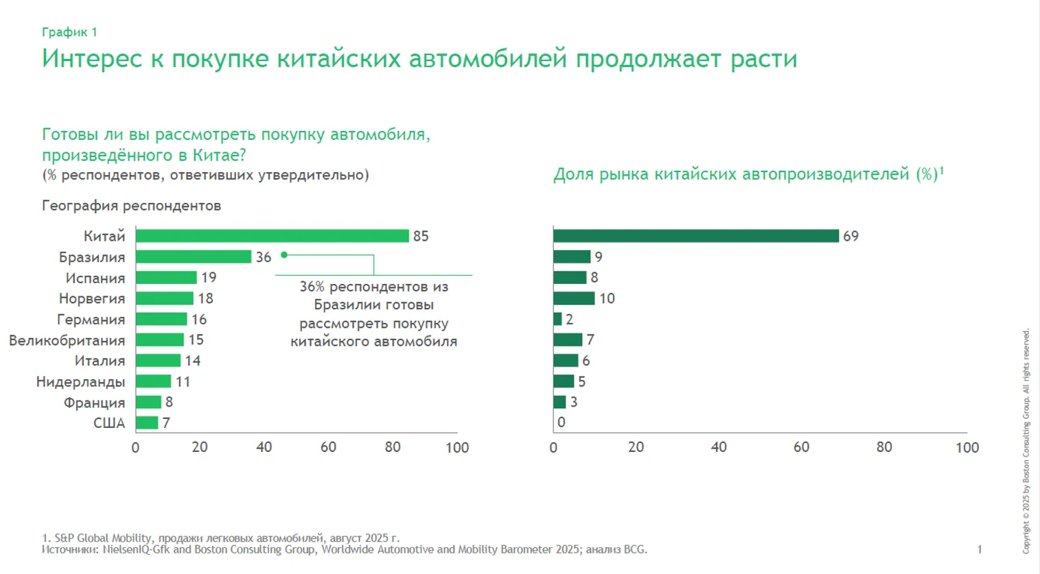 · 36% бразильцев готовы рассмотреть покупку китайского автомобиля;